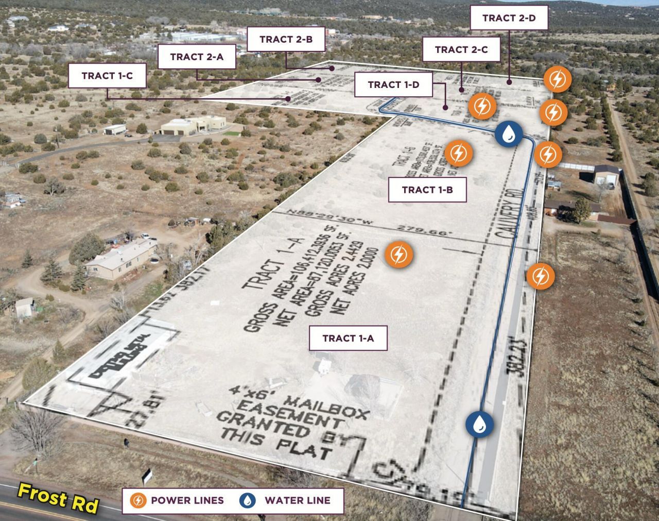 Cauvery Land unfolds across 19.42+/- acres zoned A-2 in the heart of Bernalillo County's East Mountain growth corridor, where demand for larger parcels and flexible development continues to accelerate. As you enter through the fully gated frontage with partial block wall perimeter, a paved internal road guides circulation from the southern ingress/egress point, already establishing the framework for phased neighborhood lot layout. The first lot has electricity piped in, providing immediate operational capability, while water is available at the street for the balance of the tract--minimizing early infrastructure friction and preserving capital efficiency.Just off Frost Road (8,225 VPD) and less than a mile from the San Antonio roundabout, the site sits at a key access node within an